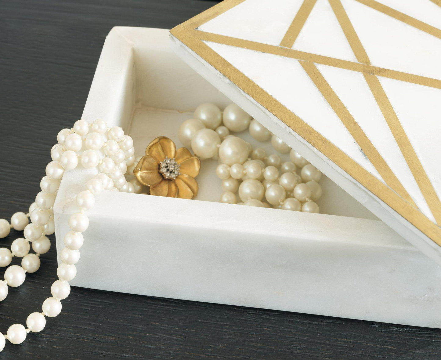 This set of three keepsake boxes makes storage so striking. The sleek marble design is completed on top with a brass-tone metal inlay. Adding a touch of brilliance to your decor, this set is the perfect place for your dearest keepsakes.
