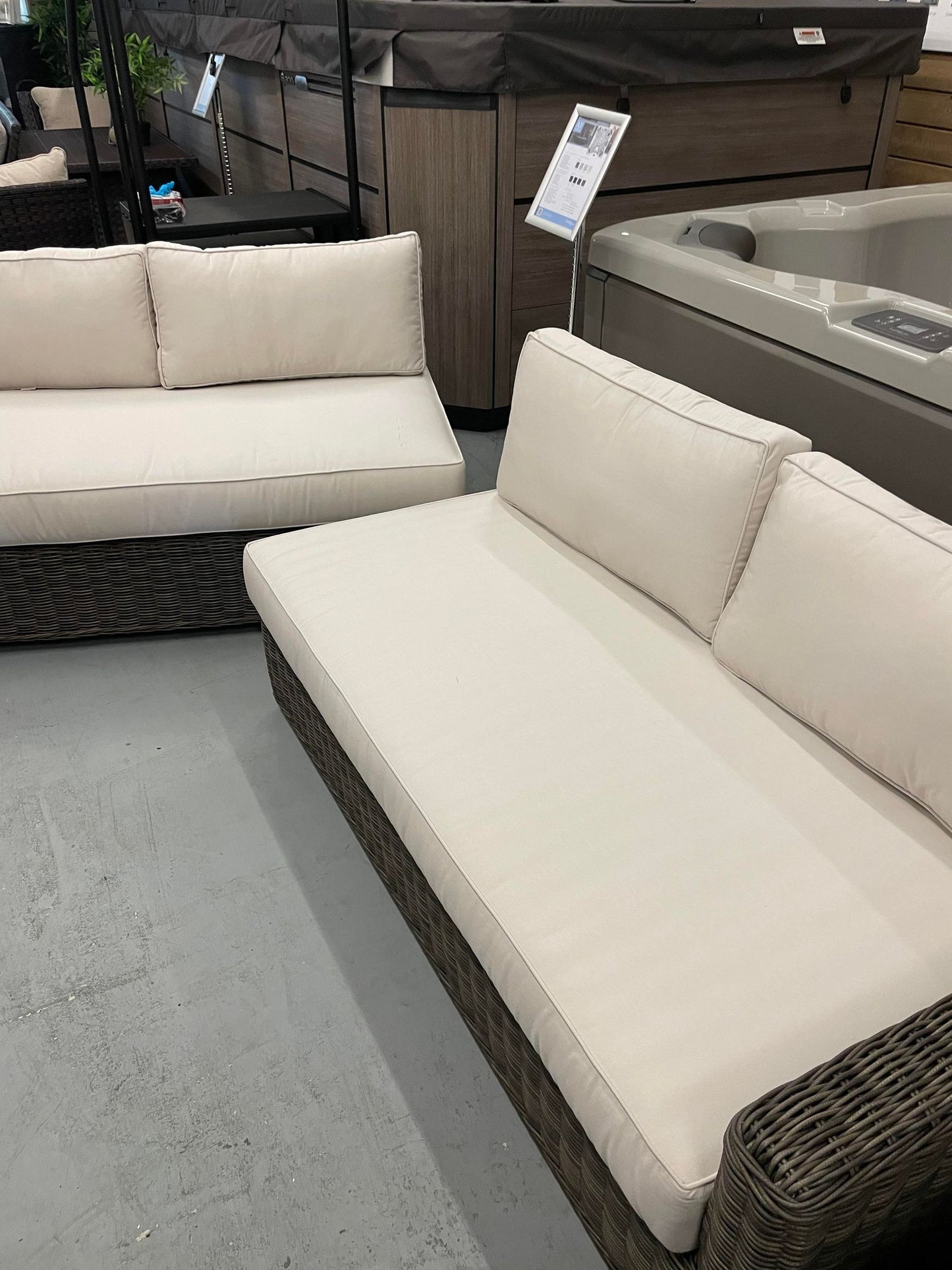 MODERN COMFORT: Experience ultimate in relaxation with this low back deep seating modern rattan set that will have you sink into comfort. This trendy low profile set features thick back and seat cushions and cozy throw pillows that further add to the contemporary luxury of this set. Sunbrella Fabric.
