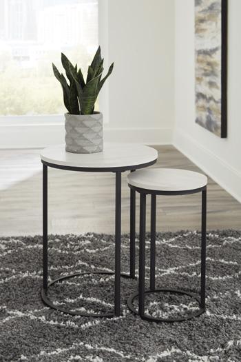 Tight budget? Tight space? You're all set with this nesting table set. Clean-lined round design is decidedly contemporary, while gray washed tops serve up casual coolness.