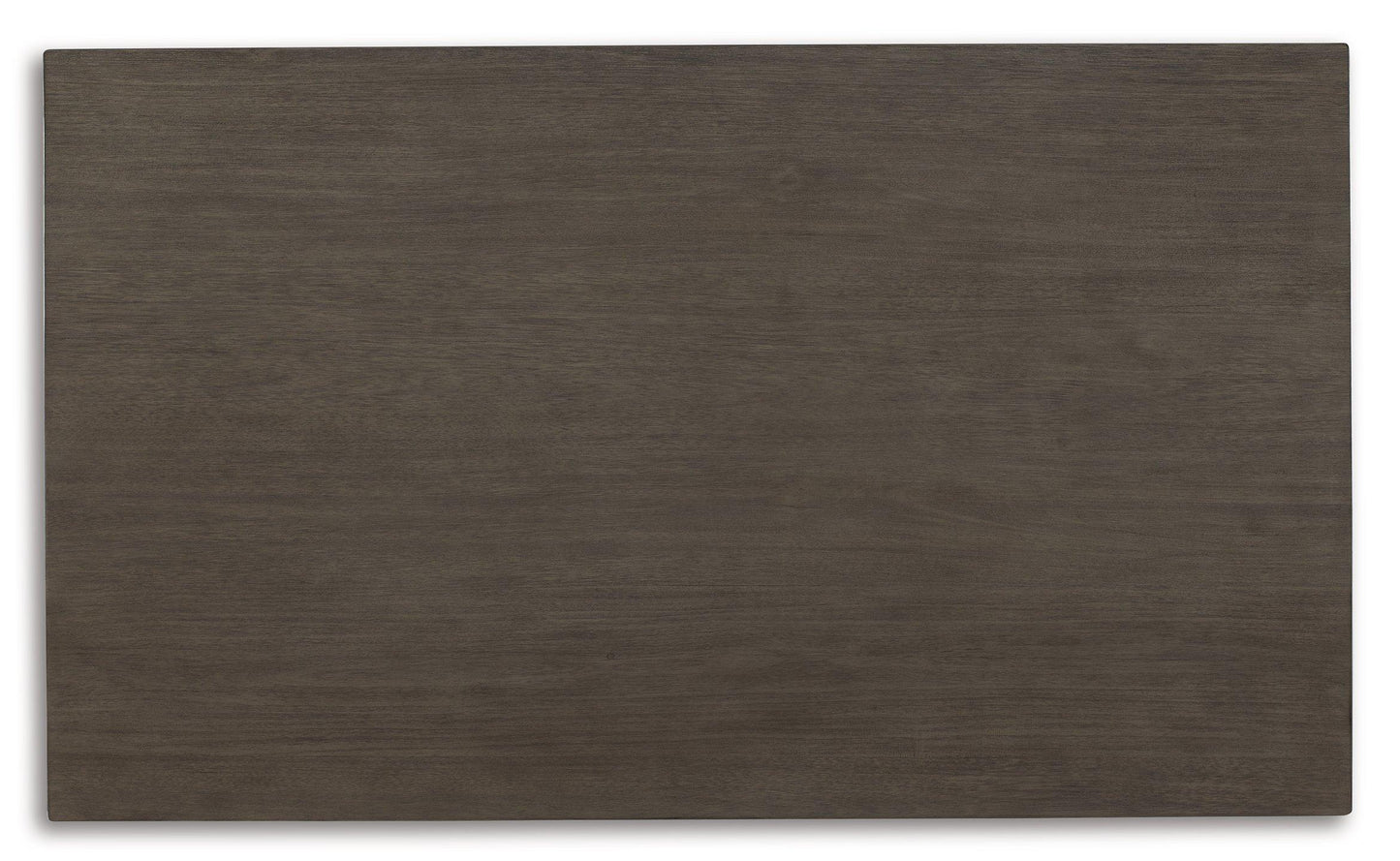 Perfect portion. Striking a simply chic pose, this dining set is styled with fascinating flair. Subtle gray wash finish gives the clean-lined design a casually cool sensibility, while the chair’s plushly cushioned seat in a soft, neutral upholstery adds to the allure.