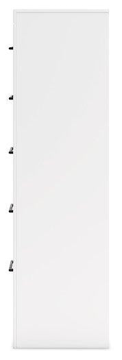 Relaxed yet striking, this chest of drawers brings casual beauty and function to your dream destination. You're sure to love its five spacious drawers that glide open and offer plenty of storage for your wardrobe and spare bed linens. A delightful two-tone treatment blends a fresh replicated oak grain with a matte white finish, while sleek handles in an antiqued gunmetal finish lend a contemporary touch.