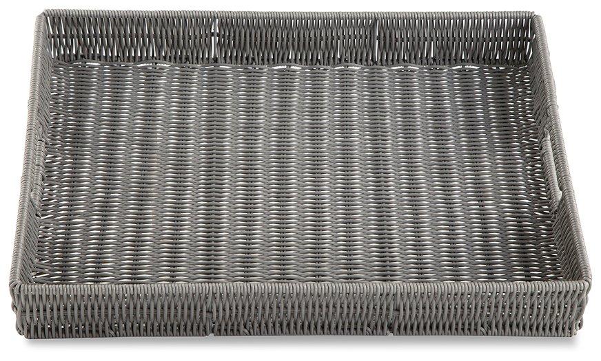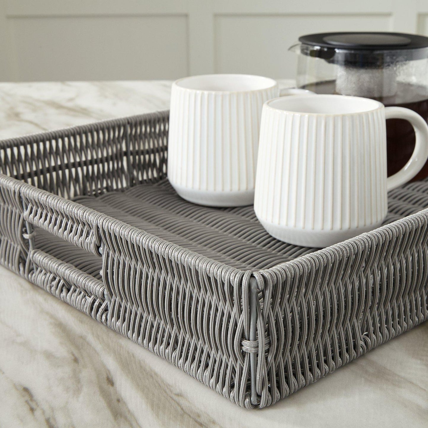 Complete the look of your restful retreat with this homey tray. Its antiqued gray faux rattan acts as a versatile backdrop while holding other decorative elements. On its own, this chic indoor/outdoor piece punctuates your tabletop decor with its versatile style.