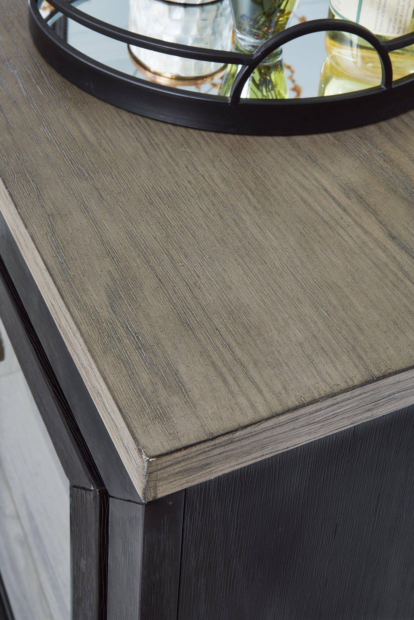 This dresser and mirror set is casual contemporary style simply done right. Its two-tone color scheme features a rich brushed black main color accented with a beautiful dusty grayish brown wood tone. With 11 soft-close drawers (three located neatly behind each door) the dresser offers plenty of storage to accommodate your wardrobe needs with ease.