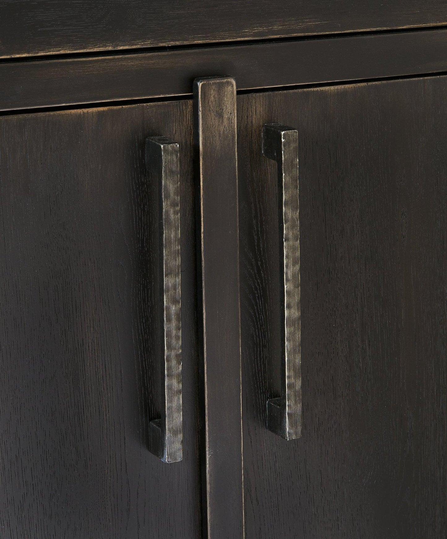 This dining buffet and hutch bring a rustic vibe to urban contemporary design. It’s a modern approach to natural beauty, with an aged black finish defining the piece. And the color palette is stunningly simple, allowing you to seamlessly coordinate the pieces with your existing decor.