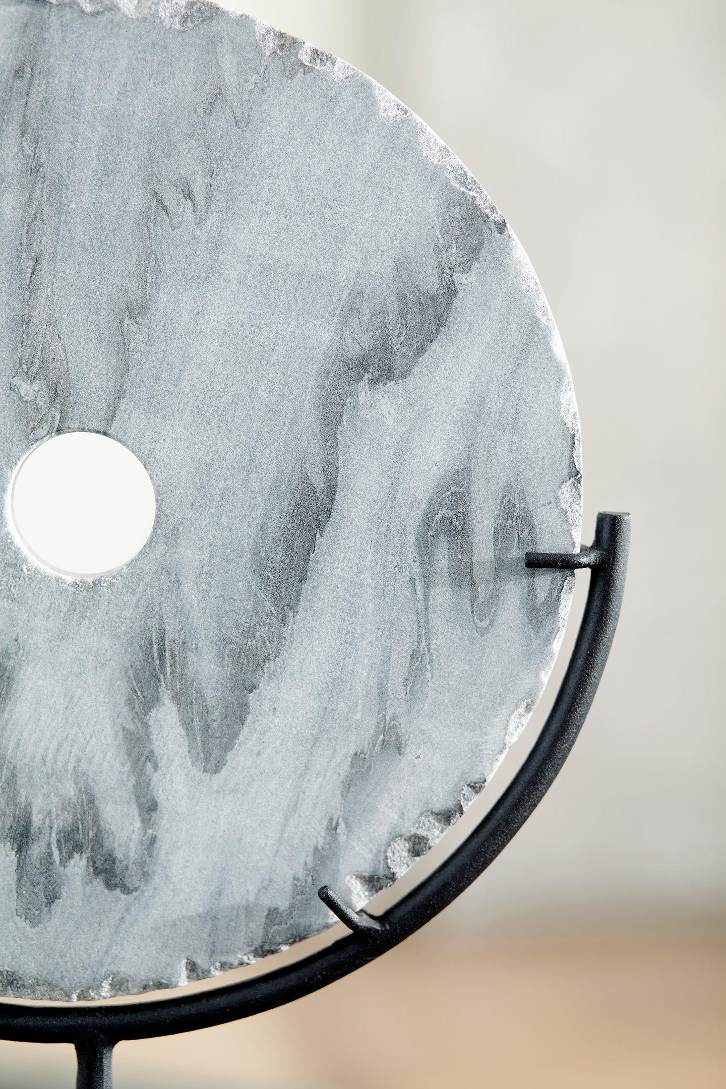 An upscale twist. Like something you’d see in a trendy contemporary art gallery, this black marble disc sculpture on a black metal stand is as elegant as it is eye-catching. What an especially striking entryway piece.