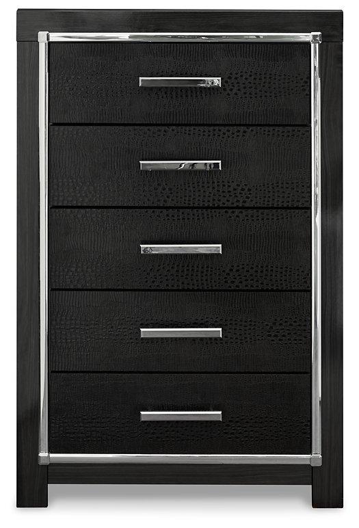 Rest easy. The luxurious look you’ve been dreaming of is yours for the taking, at a price sure to put you at ease. This striking chest of drawers’ deep, dark finish, faceted chrome-tone accents and faux alligator panels exude Hollywood-chic style to the max. Sure to entice those with refined tastes, this chest is a contemporary masterpiece.