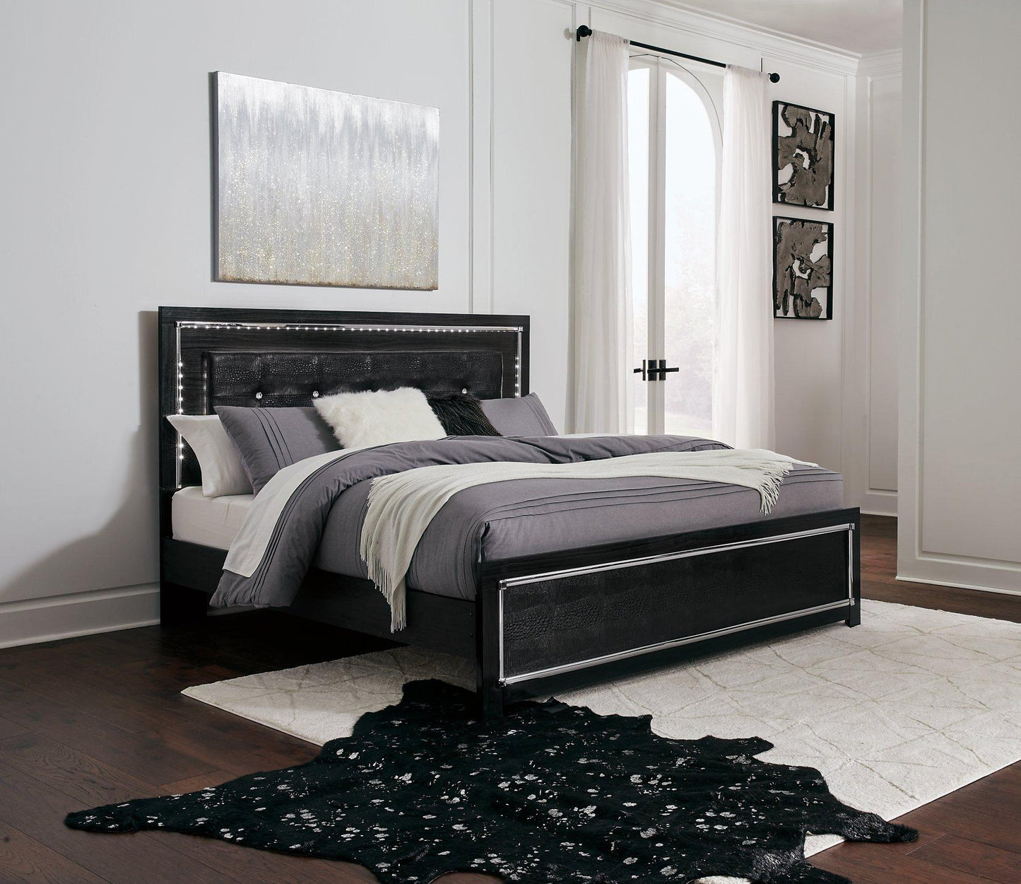 Rest easy. The luxurious look you’ve been dreaming of is yours for the taking—at a price sure to put you at ease. This panel bed brings a sense of old Hollywood with a contemporary flair. A deep, dark finish, faceted chrome-tone accents and LED lighting exude Hollywood-chic style to the max. Padded windowpane-stitching on the sleek, black upholstery infuses a sumptuous look that’s upscale and indulgent, and utterly on trend. A wireless remote allows you to control the color and brightness to suit the mood.