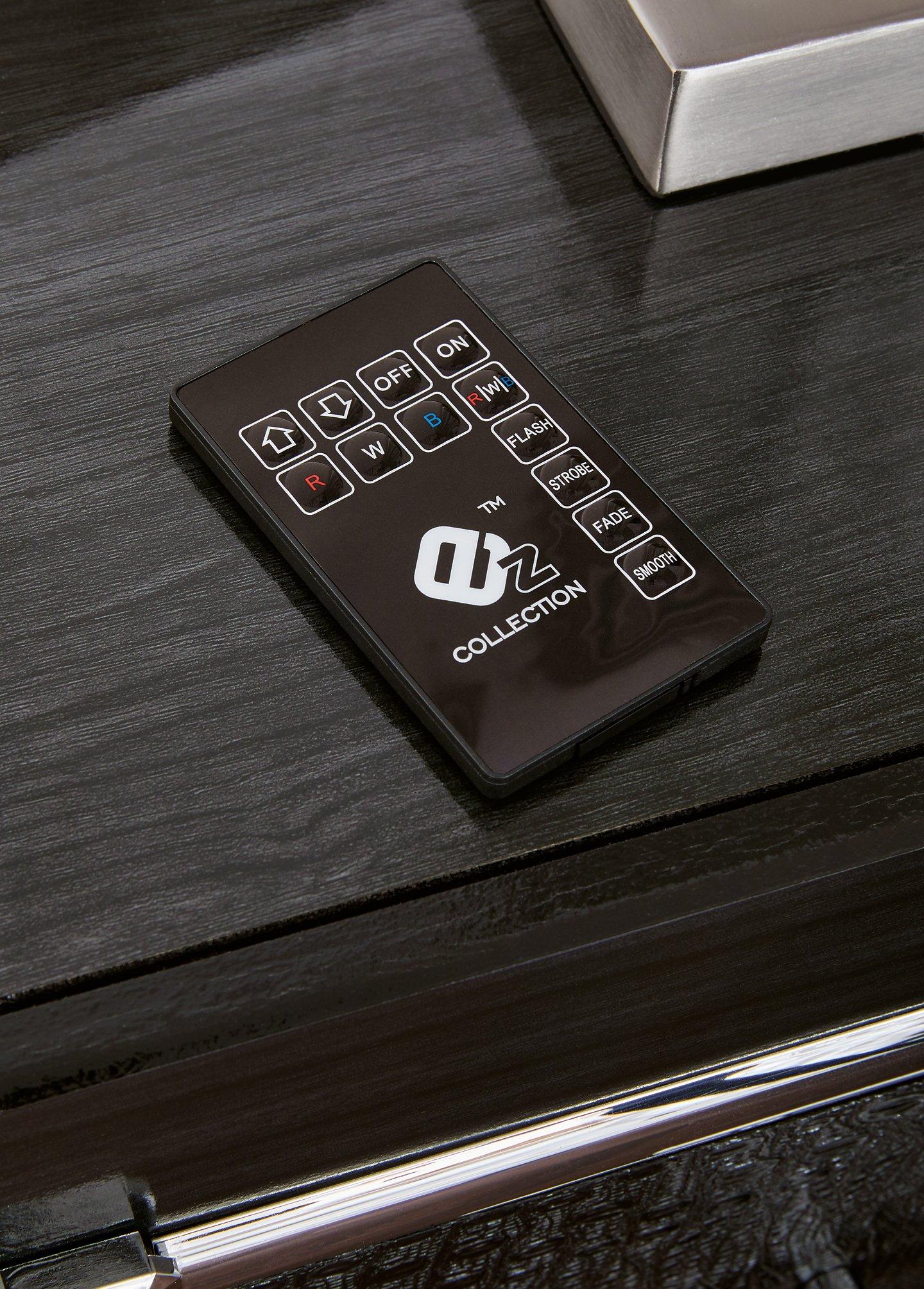 Rest easy. The luxurious look you’ve been dreaming of is yours for the taking, at a price sure to put you at ease. This queen upholstered panel platform bed brings a sense of old Hollywood with a contemporary flair. A deep, dark finish, faceted chrome-tone accents and LED lighting exude Hollywood-chic style to the max. Padded windowpane stitching on the sleek, black upholstery infuses a sumptuous look that’s upscale and indulgent, and utterly on trend. A wireless remote allows you to control the color and brightness to suit the mood.