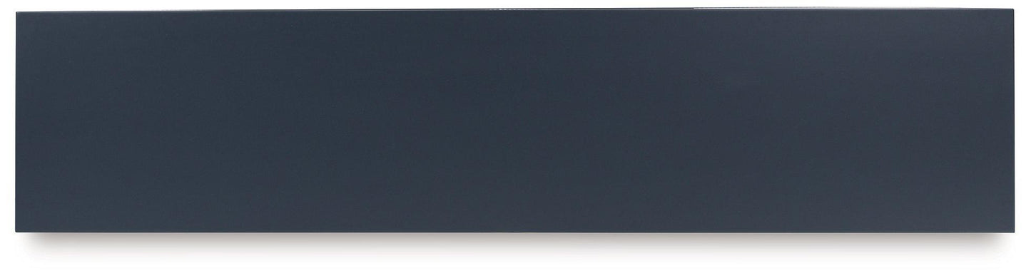 Elevate your aesthetic with the chic design of this accent cabinet. Sleek goldtone legs and striking doors with a geometric pattern infuse contemporary flair wherever you place this piece. Add a dark blue finish, and you've got a stunning showstopper. Providing function to form, the cabinet's push magnetic doors reveal two shelves and openings for electronics.