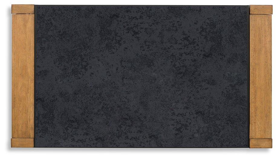 With a built-in spring lift top—ideal for casual dining and laptop use—this coffee table rises to the occasion in fine style. Clean lines and natural wood-tone legs make it endlessly versatile. The table's faux stone melamine laminate top is durable and waterproof—a clever blend of form and function.