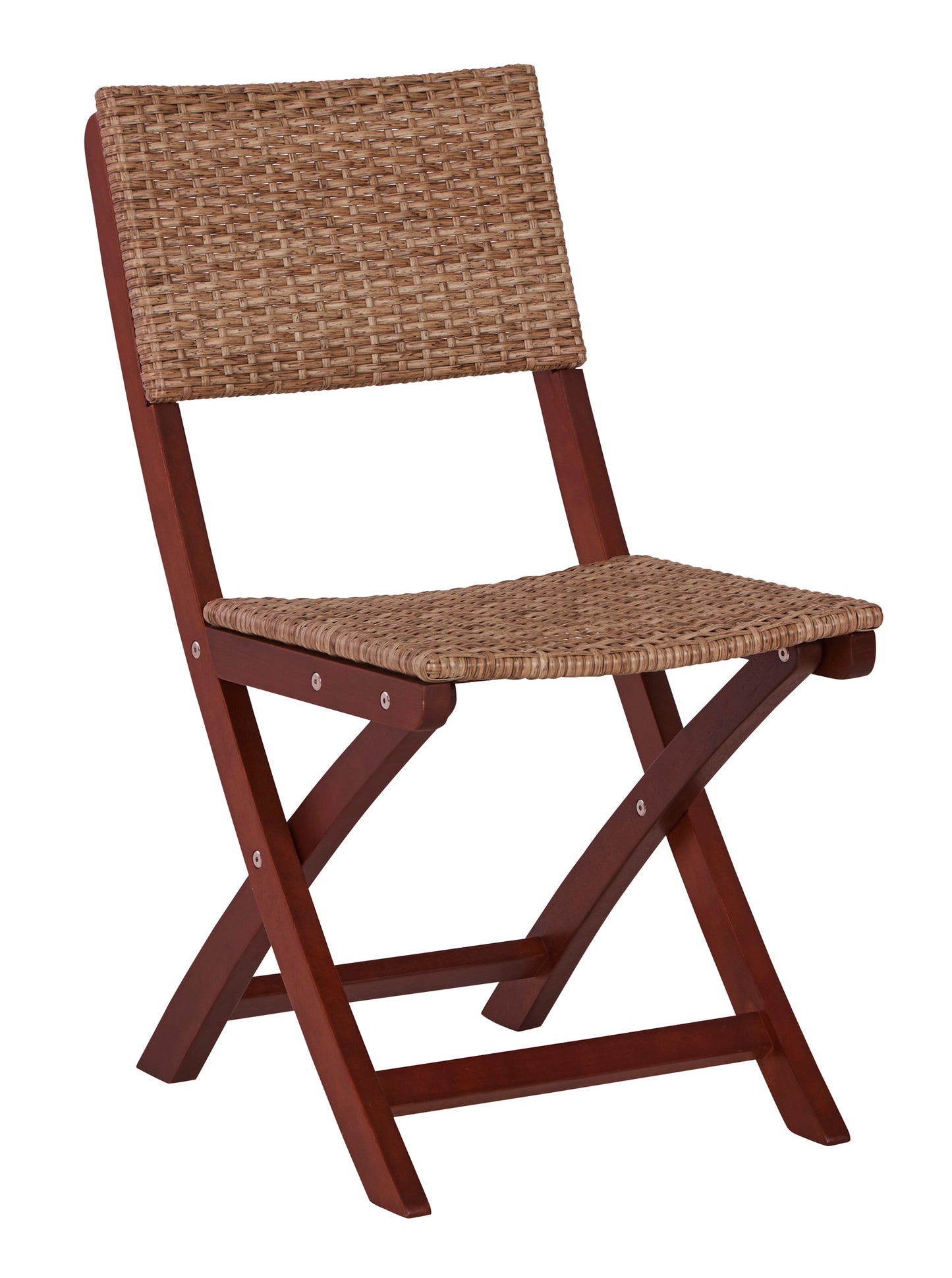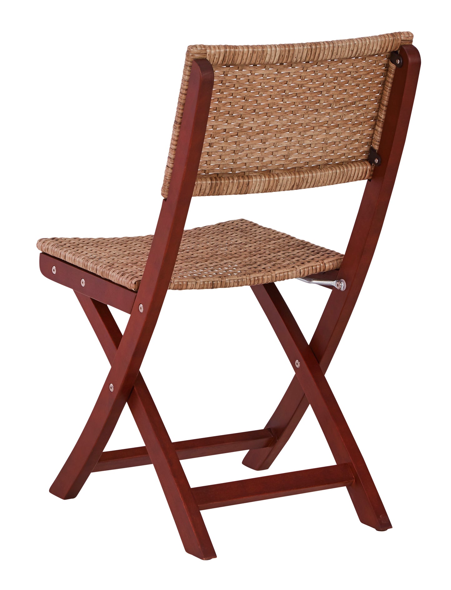 Three piece folding bistro set includes 2 chairs and table. Hand woven resin wicker on a Eucalyptus wood frame. Durable Polyurethane finish. No assembly required. Available in two colours: Brown & Gray.