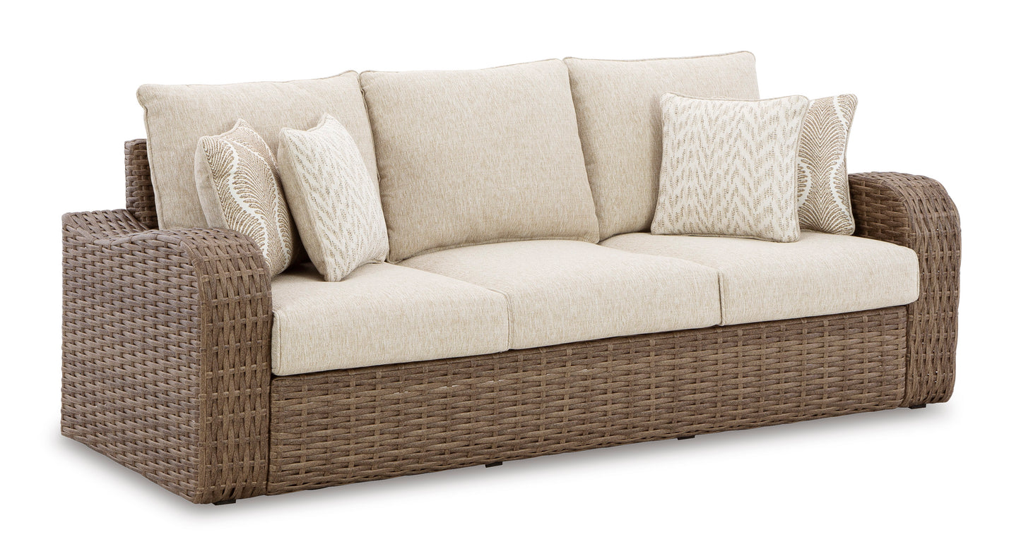 Indulge in style that suits your easy-breezy sensibilities. This collection crafts a richly relaxed feel in your outdoor seating area. The driftwood hue of its durable resin wicker invites your casually cool aesthetic alfresco, with plush cushions wrapped in easy-care Nuvella® fabric providing ultimate comfort.