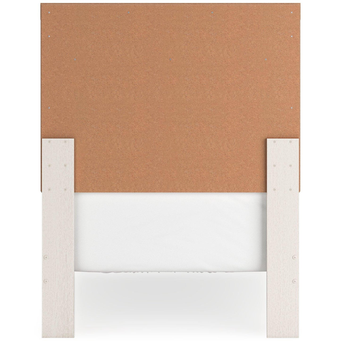 With its clean-lined look and modern attitude, this queen panel bed is a fresh style awakening. A crisp, white hue over subtle replicated wood grain easily complements other furniture finishes. The simple, unadorned profile is given depth and dimension with the addition of plank-style moulding on the headboard—proof that beauty lies in the details.