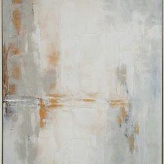 Get lost in the abstract with this delightfully contemporary canvas wall art. Restful tones of gray, amber, white and cream create an impressive display wherever you place the framed piece. Hand-painted embellishment conveys a sense of originality. The ability to hang the art four ways provides more versatility in curating your space.